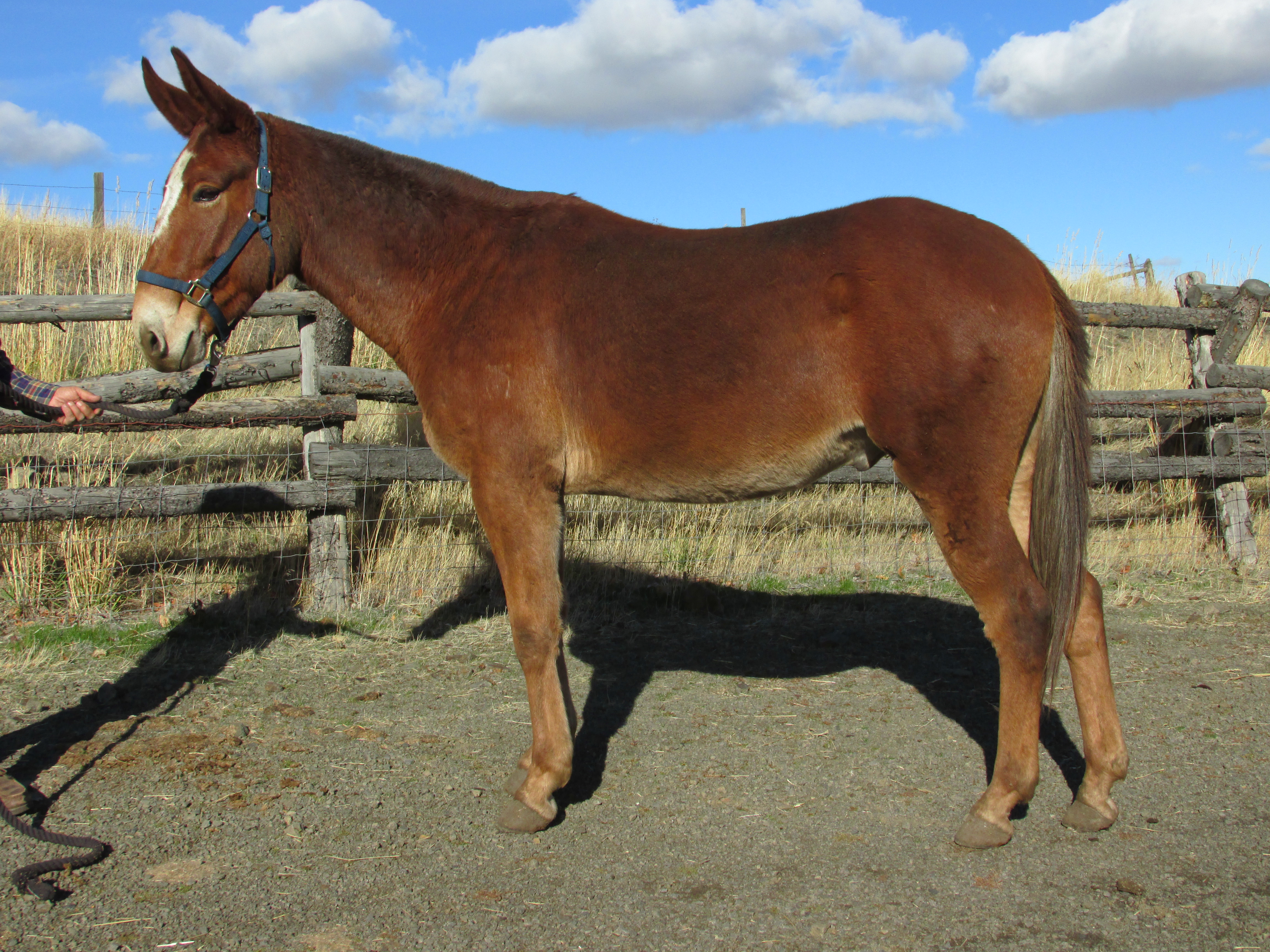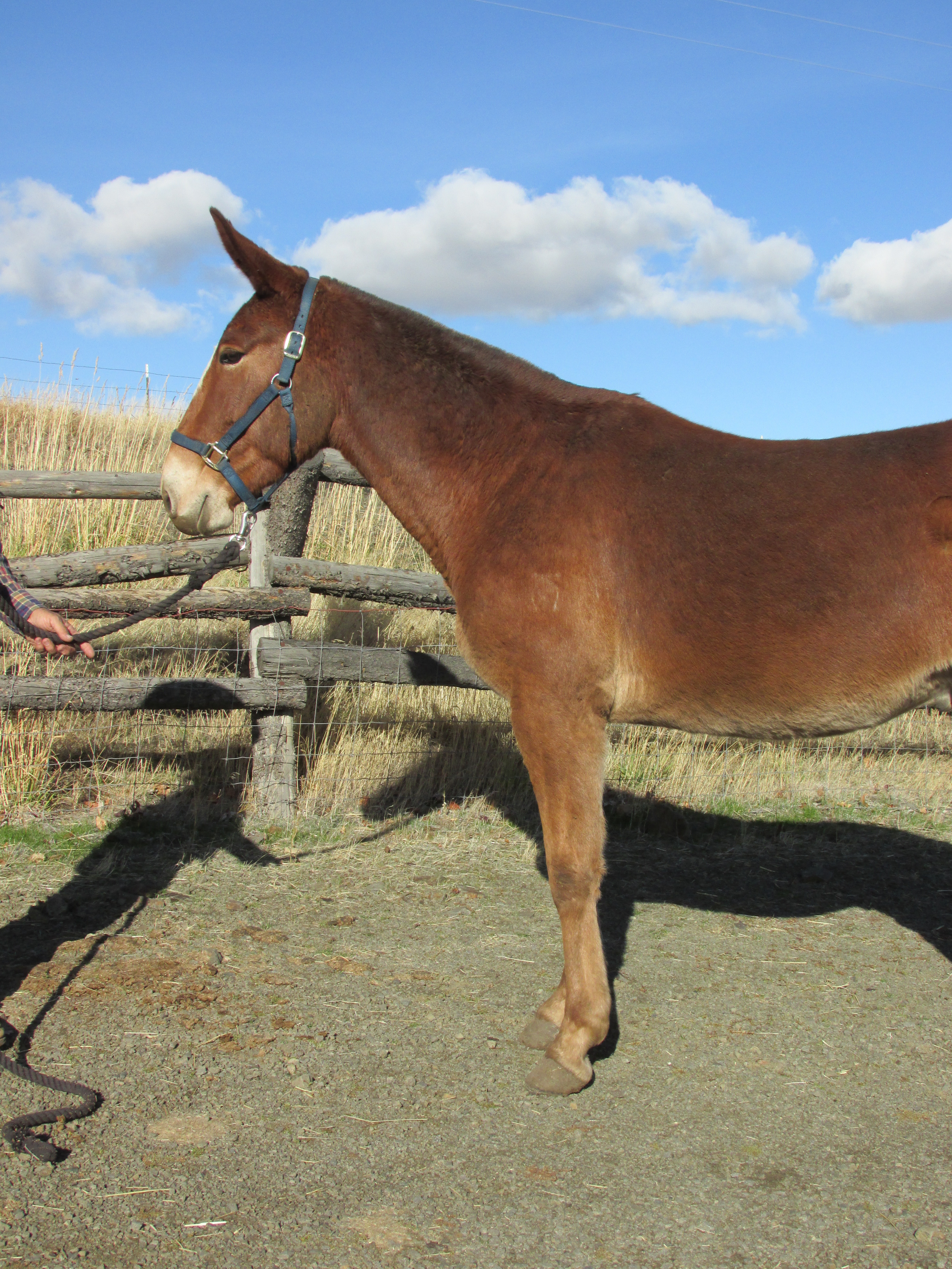 We raised this mule from a baby and have taken the time slow and easy for a solid mount. He has some light packing experience in the past years and now extensive riding by Matt Fournie of Bend Oregon. Marty is all mountain mule, good on trails with a controlled ride. This mule is in shape and ready to hit the trails.